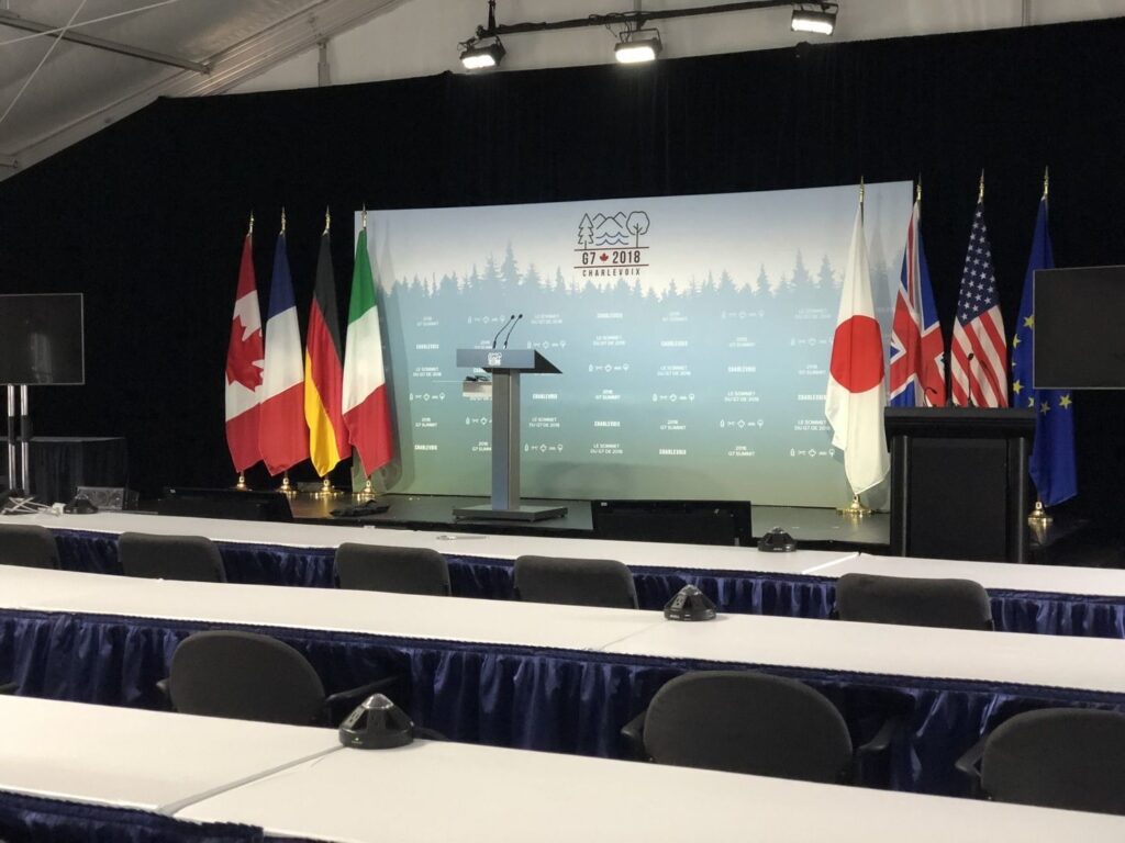 Mais ce n’était pas tout ! Grandchamp a également fourni une tente médiatique de 50 pieds x 90 pieds pour les journalistes ainsi qu’une tente de repas (ayant servi 60 000 repas !) Pour la GRC qui pourrait accueillir les 3 000 policiers en service. Le moins que l’on puisse dire, c’est que l’expertise de Grandchamp Structure Design est désormais reconnue dans le monde entier ! Voici comment ! Les 8 et 9 juin, les dirigeants du G7 se sont réunis au Canada, au Fairmont Le Manoir Richelieu, situé à La Malbaie, dans la région de Charlevoix. Devinez quoi ? Grandchamp était là ! En fait, nous avons fourni les chapiteaux pour les réunions, mais aussi pour la base militaire des Forces armées canadiennes à Saguenay-Bagotville. Nous sommes d’autant plus fiers que ce lieu représentait un site clé qui répondait spécifiquement aux besoins du G7 à La Malbaie. Mais ce n’était pas tout !Grandchamp a également fourni une tente médiatique de 50 pieds x 90 pieds pour les journalistes ainsi qu’une tente-repas (ayant servi 60 000 repas !) Pour la GRC qui pourrait accueillir les 3 000 policiers en service.